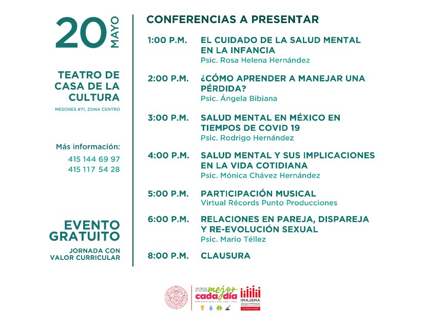 En marco al día nacional del psicólogo y en colaboración del colegio de psicólogos de San Miguel de Allende, se convoco a conferencistas, como la salud mental en los jóvenes, la sexualidad y relación en pareja y el tema del COVID.